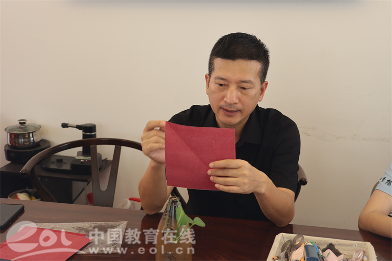 “亲手剪出的线条,才是传承最鲜活的注脚”,非遗剪纸传承人叶文运以一句质朴箴言开启实践课堂,为实践队员们现场演示自主研发的新型纸张染料技术。