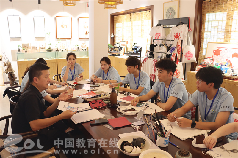 在叶文运的指导下,实践队成员亲手剪刻、转印,将苍南山海元素融入剪纸设计,打造兼具艺术性与传播力的个性化文旅伴手礼。