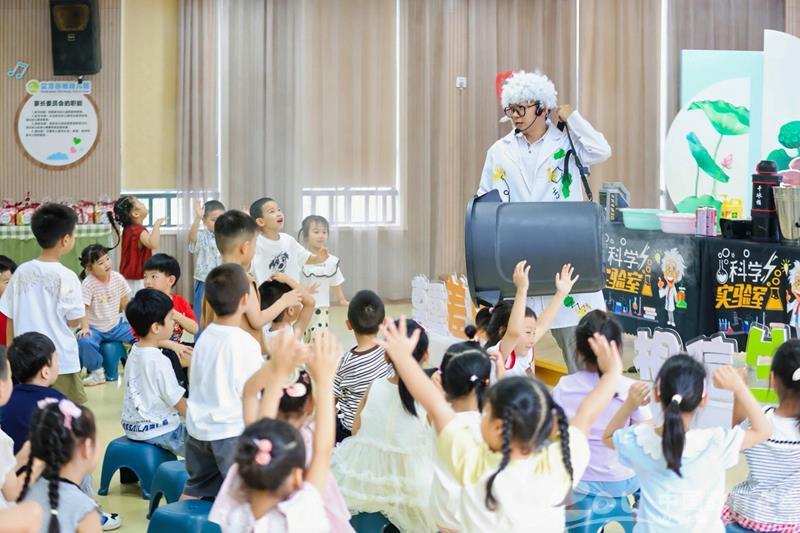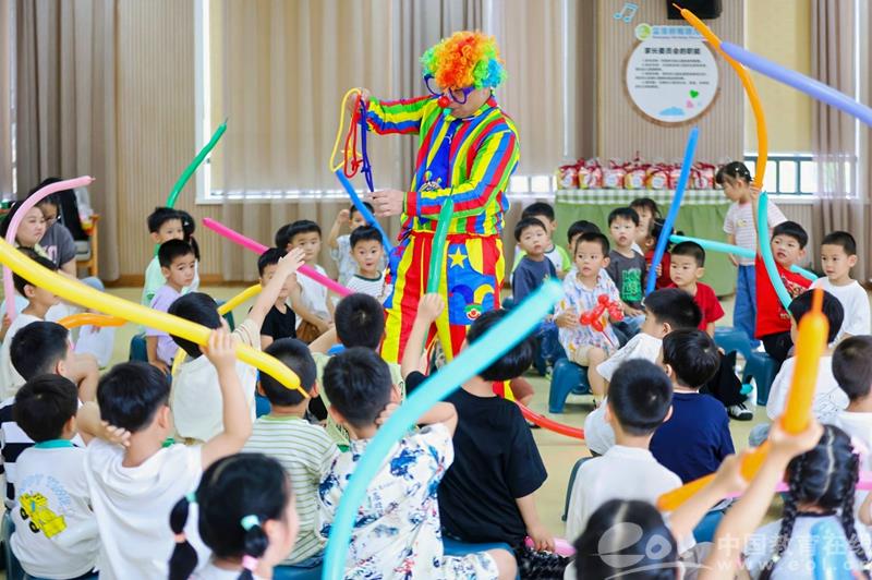 孩子们的小脑袋里藏着十万个为什么,他们好奇一切新鲜的事物和现象。在和科学博士一起挑战和互动的过程中孩子们收获了许多有趣的科学小知识。当小丑先生带着大大的笑容走上舞台,整个幼儿园瞬间沸腾起来,他用道具表演了一个个神奇的魔术。用充满创意的表演,将普普通通的气球变成了一个个神奇的造型。红鼻子小丑化身行走的“开心果”,夸张搞怪的肢体表演让孩子们欢乐极了。小丑魔术、趣味实验点燃快乐,伴手礼传递温情都给孩子们带来了不一样的新体验。