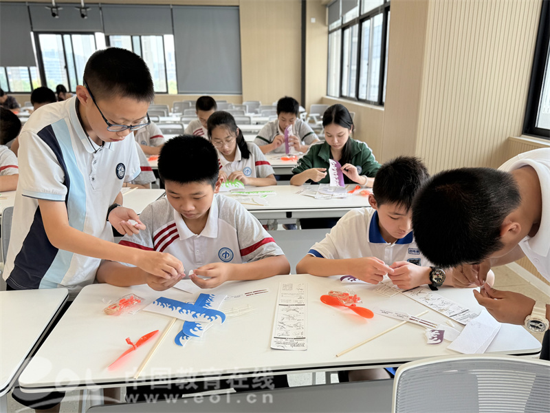中国教育在线浙江站讯 (记者 陈显婷 通讯员 柳淳)近日,来自丁信中学及周围兄弟学校新八年级、新九年级的暑期托管班的同学们迎来了一场别开生面的航模课。上城区关工委科技服务团的老师们带着孩子们动手制作、放飞航模,让“筑梦科技·放飞未来”的主题在实践中落地,也让科学的种子在孩子们心中悄悄扎根。