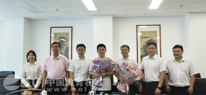 学军为董镇宇送上定制羽毛球拍和鲜花