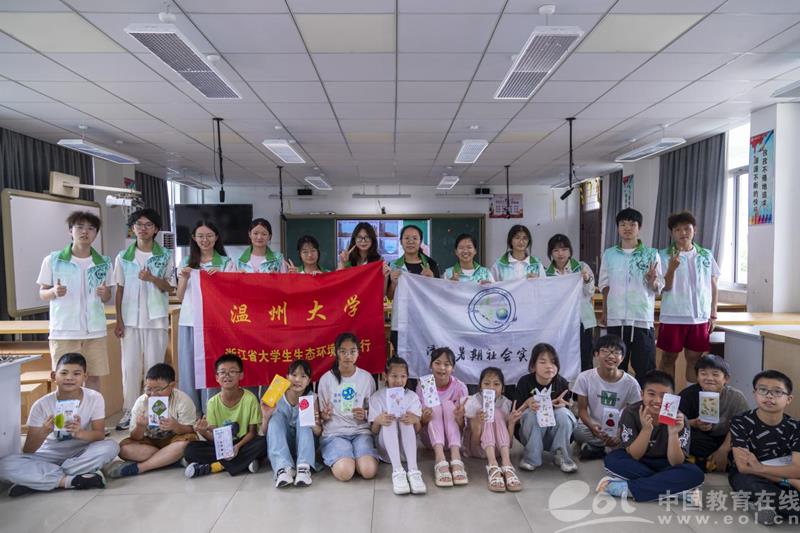 中国教育在线浙江站讯(编辑 邱彬鑫)当晨露还凝在仙溪的稻叶上,一群身着白绿队服的年轻人已踏着石板路走进北阁老街。他们是温州大学生命与环境科学学院文达清源暑期实践队的队员,正带着环保手册挨家挨户叩响木门。这场跨越校园与乡野的生态实践,正以青春之名,在瓯越大地上铺展成一幅生动的生态文明画卷。