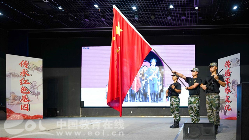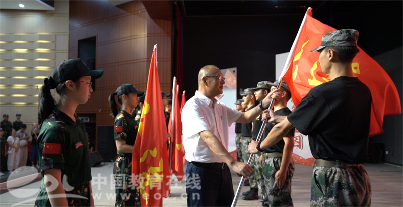 戎创少年军校洪哲副校长宣读骨干任命,杭十中书记、校长陈积粮为各连队授旗。翻飞的连旗承载着集体荣誉,少年们接下的是旗帜,更是自我管理与习惯养成的成长契约。