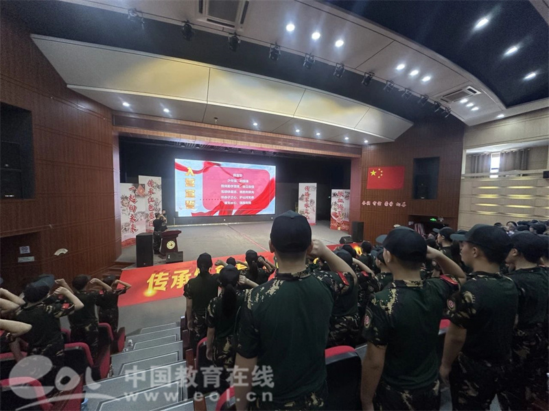 全体新生高举右拳庄严宣誓。字字句句如金石掷地,将守时守纪、勤勉自强的习惯准则,熔铸为未来五日的行动纲领。