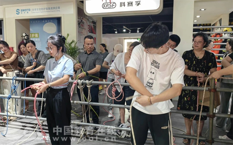 随后进行的逃生绳索打结训练中,教师们练习了实操拼结、消防结、固定结等多种救生绳结的打法。教官耐心讲解每种绳结的适用场景和操作要点,确保每位教师都能熟练掌握这项高空逃生的关键技能。