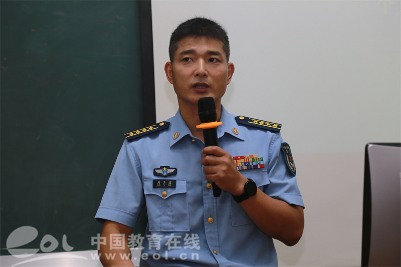 中国教育在线浙江站讯(记者 陈显婷 通讯员 孟莉娜)迷彩青春,热汗砺志。8月28日,杭州市勇进实验学校国防教育活动进入第四天,东部战区空军航空兵某旅特级飞行员周玉宝大校走进校园,为七八年级学生带来一场题为“空军画卷”的国防教育专题讲座,分享他的“云端故事”。