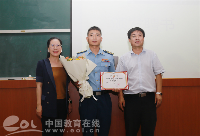 据悉,这一次进校园,周大校被聘为“校外辅导员”,勇进实验学校书记马生彦为其颁发聘书。未来,周大校将以“成长导师”的身份,持续引导勇进学子理解“勇敢、坚毅、上进、有德”的深刻内涵,将蓝天下的忠诚与奋斗故事,化作滋养学子成长的宝贵精神力量。