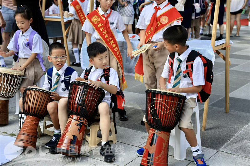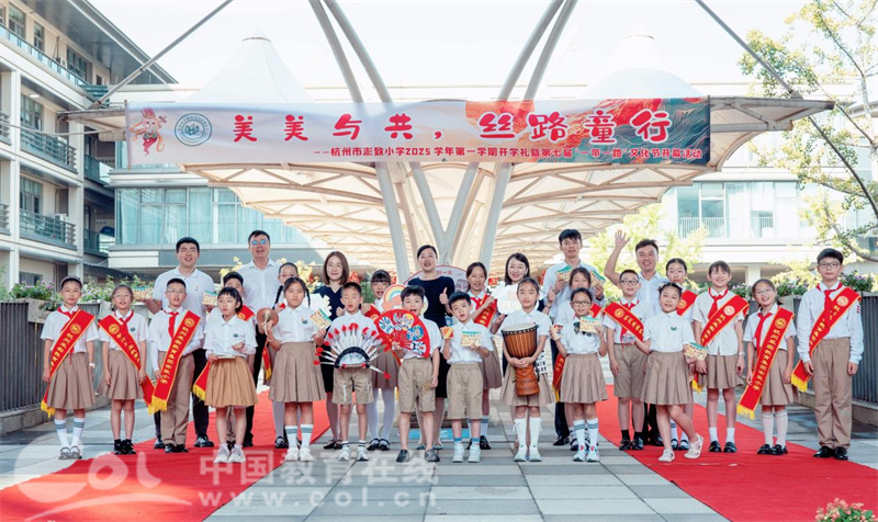 8月31日一早,杭州市澎致小学校门口成了一场跨越时空与地域的艺术盛会。围绕“美美与共,丝路童行”主题,学校将“一带一路”沿线国家的艺术瑰宝“搬”进校园,让学生通过沉浸式的美学体验,开启新学期的第一课。