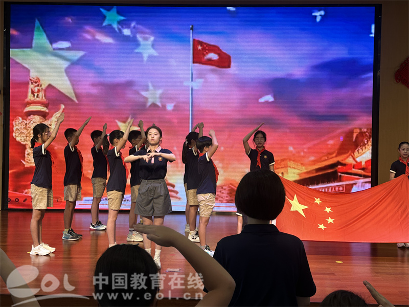 中国教育在线浙江站讯(编辑 陈显婷 通讯员 姚敏明)红旗飘扬,歌声嘹亮,杭州小学生在抗战胜利80周年的特殊时刻,迎来了充满意义的开学第一课。