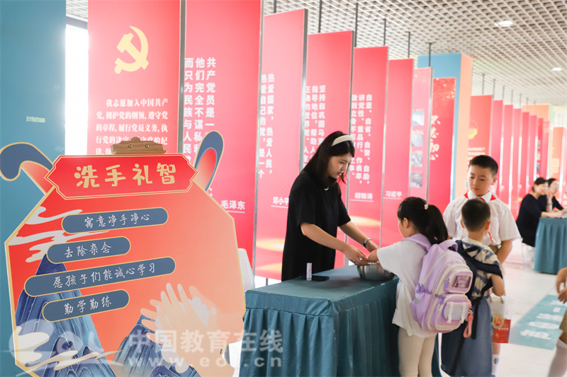 学校还为他们特别举办了一场庄重而典雅的开笔礼仪式,以传统文化之美浸润童心,开启求知之旅。正衣冠明事理。“童蒙之学,始于衣冠;先正衣冠,后明事理。”学长学姐们为一年级新生悉心整理衣冠。沃盥净心启智。同学们依次行至盥洗处,虔诚地清洁双手。清水流过指尖,寓意净手净心,祛除杂念,以专注之心投入学业。