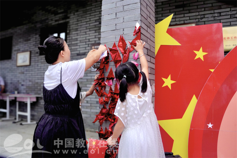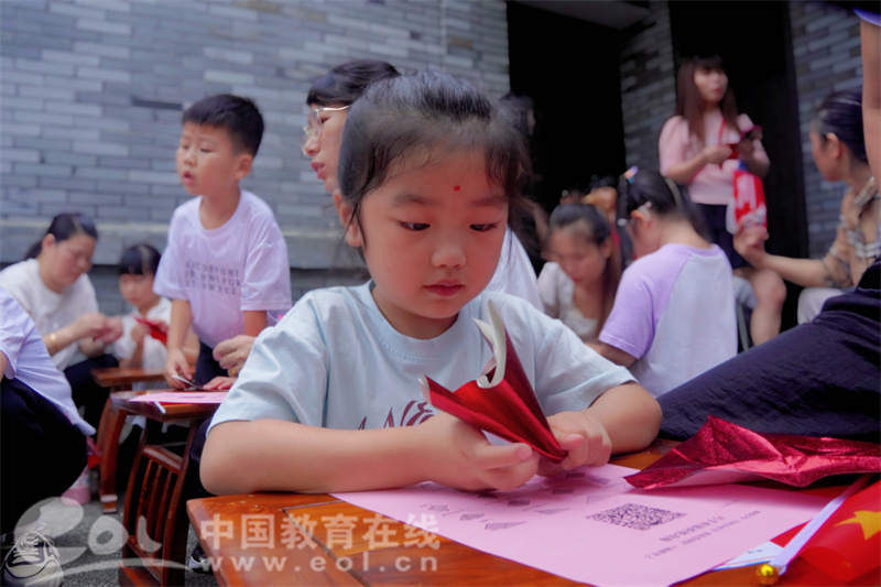 中国教育在线浙江站讯 (编辑 鲁少辛 通讯员 李洋)“孩子们,这只千纸鹤代表着和平与希望,我们要铭记历史,珍惜今天来之不易的幸福生活。”在老师和家长的引导下,一双双小手认真地折叠,一道道折痕都蕴含着对祖国的真挚祝福。不一会儿,一只只栩栩如生的红色纸鹤在孩子们手中“诞生”,校园里弥漫着浓浓的爱国情怀和积极向上的氛围。