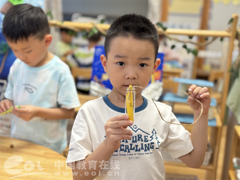 作为幼儿园里最大的孩子,大班的幼儿开始学习规划未来、珍藏回忆。他们开展了充满仪式感的“时光珍藏盒”活动。孩子们认真地在彩纸上绘制图案,或请老师帮忙写下自己对未来的美好愿望、对暑假生活的精彩回忆。这些承载着梦想与回忆的纸条被仔细卷起,郑重地放入班级共用的“时光胶囊”瓶中。老师们引导孩子们共同探讨并约定开启胶囊的时间,在他们心中埋下了珍惜时光、规划未来的种子。