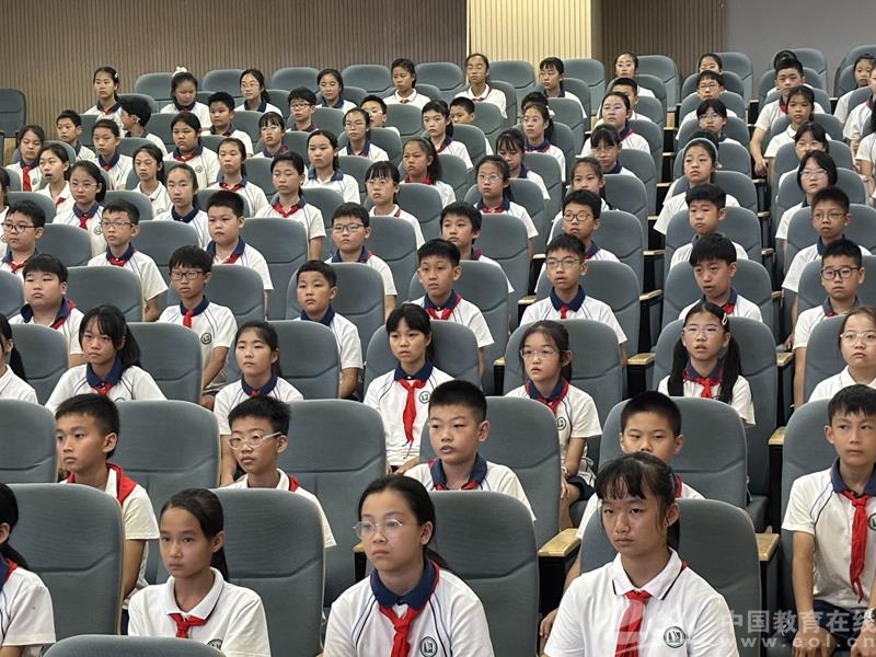 笕文实验学校校长孙婕表示:“我们不仅要让学生在课堂上听红色故事,更要创造机会让青少年成为红色故事的主角。”据悉,学校一直将爱国主义教育作为学生思想政治教育的重要组成部分。早在开学第一天,学校就以“赓续爱国血脉 童心致敬山河”为主题,精心策划了“红色三重礼”活动。学生们在巨幅中国地图背景板上贴上寓意“爱国心”的爱心贴纸,以这种满满的仪式感,赓续红色血脉,致敬祖国山河。学校构建“红蓝融合”课程体系,以“浸润式”坚持开展红色主题教育活动,在青少年心中焕发出新的生命力。