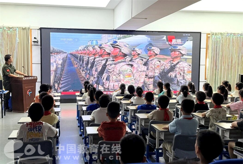 中国教育在线浙江站讯 (编辑 鲁少辛 通讯员 黄瑞芳)9月3日上午,纪念中国人民抗日战争暨世界反法西斯战争胜利80周年大会在北京天安门广场举行。杭州市高银巷小学组织全体师生观看现场直播,共同见证这场震撼人心的国之盛典。