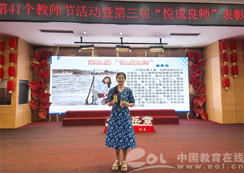冯霞老师颁奖词:三尺讲台数十载,冯霞老师以匠心守初心。从八圈图的精妙解读到欧姆定律的实验探究,她总以实践为钥,引学生叩开科学之门。课堂上,她鼓励质疑、催生讨论,让思维在碰撞中抽丝剥茧,让科学的魅力在层层探究中自然流淌。课堂外,她设计家庭小实验点燃探究欲,制作小微课程凝练思维,让科学素养在潜移默化中生长。错题本上的细致批注,学困生耳边的耐心点拨,她以心育心,与学生并肩前行,在教与学的交融里,共赴知识的星辰大海。