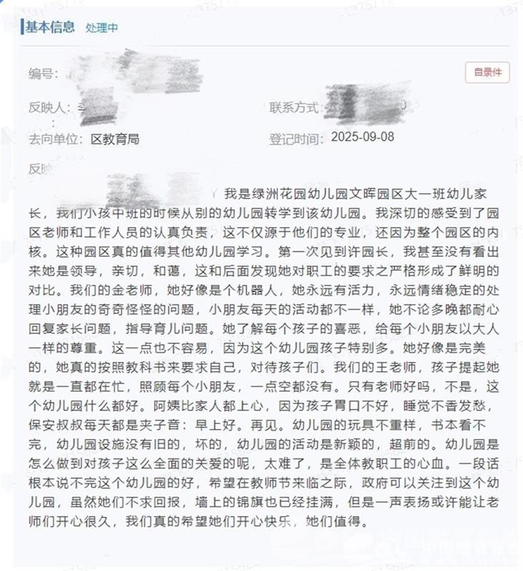 绿洲花园幼儿园不大,却装得下四百多颗童心和四百多种好奇;教学楼不新,却因为被全体家长持续信任而日日如新。但是其实老师并不是美的。家长教会了孩子“感恩”的同时,也让老师获得“被看见的勇气”。往后,当老师们再遇到琐碎、委屈、焦虑,就会想起这封信,然后拍拍身上的尘土,继续蹲下、微笑、拥抱——因为“原来家长真的都在看,也真的都在心疼”。