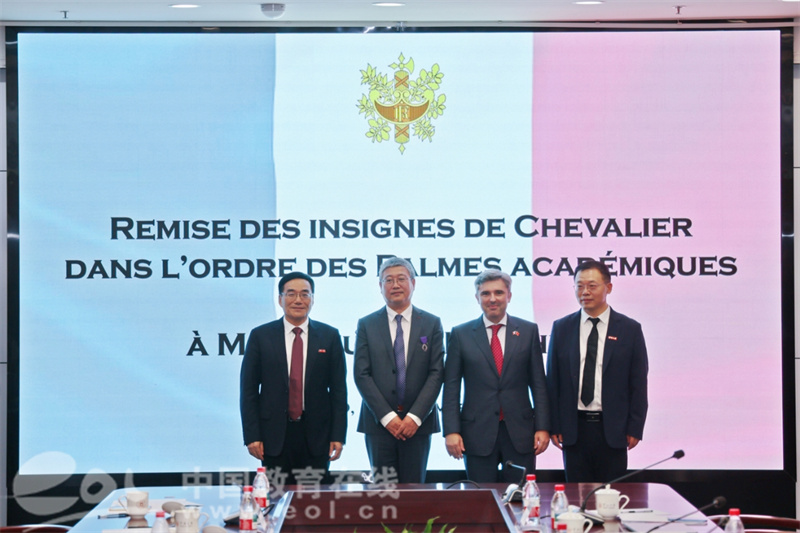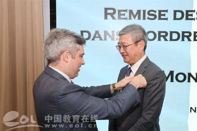 中国教育在线浙江站讯 (记者 陈显婷 通讯员 胡小燕 郑俊朋)9月18日,法国驻上海总领事王度一行来到宁波大学,向该校宁波大学昂热大学联合学院执行院长沈世伟教授授予法国教育和学术骑士棕榈勋章。据悉,他是宁波市教育系统首位获得该荣誉勋章的教师。