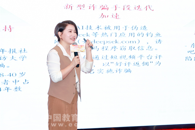 活动现场秒变“安全课堂”,中国计量大学率先以一首原创说唱视频《糖衣》向现场观众传递了防范网络电信诈骗的相关知识;栏目记者化身脱口秀演员,结合亲身采访的“黑中介收押金失联”“虚假兼职刷单”等鲜活案例,用幽默诙谐的语言阐释风险点;杭州市公安局金牌反诈宣传教师化身“防诈导师”,手把手教新生识破诈骗分子的惯用手段,详细分析其中的关键破绽,真正做到“学生需要什么,我们就教什么”。