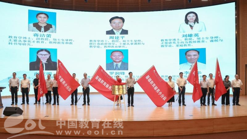 绍兴市教育协同创新研究中心成立6支基础教育服务小分队,由区域内具有广泛影响力的教授、博士领衔,定点服务绍兴市内6个区县。赵阳、石剑晗为6支基础教育服务小分队授旗。