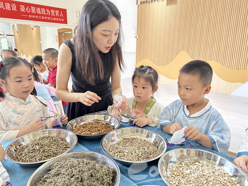 中国教育在线浙江站讯 (编辑 鲁少辛)在第11个全国近视防控宣传月来临之际,杭州市三里亭幼儿园结合园所传统中草药文化,开展了以“青瞳护眼・探寻中草药的护眼奥秘”为主题的系列活动,园所将中医药材与护眼教育深度融合,让雁宝们在互动中了解护眼中草药的功效,感受中草药的独特魅力,为雁宝们的近视防控注入传统文化新活力。