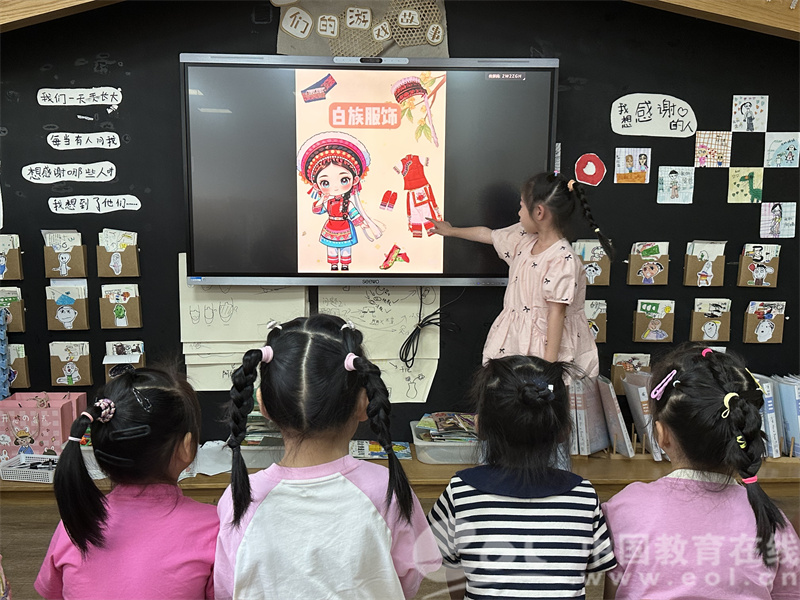 活动在一场别具一格的“民识微论坛,共绘团结图”知识分享会中徐徐展开。孩子们化身为“小小民族文化使者”,在家中与父母一同查阅资料,深入探究不同少数民族的风俗习惯。回到班级后,他们以清晰流畅的普通话,自信满满地分享着有趣的见闻:从苗族精美的银饰到傣族欢快的泼水节,从藏族圣洁的哈达到蒙古族盛大的那达慕……那稚嫩的嗓音诉说着丰富多彩的民族文化,不仅在知识领域拓宽了视野,更在实践过程中深刻感悟到“语言是沟通的桥梁,普通话促进了各民族之间的交流与理解”。