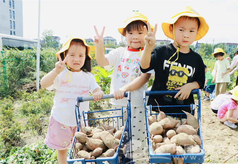 中国教育在线浙江站讯 (编辑 鲁少辛 通讯员 叶少兰)近日,萧山区空港新城幼儿园门口变身成了热闹的“新城小集市”。孩子们将两亩基地丰收的毛豆、番薯、秋葵、葫芦等蔬菜瓜果搬至校园门口,开展了一场意义非凡的秋收义卖会。从春播到秋收,这场贯穿四季的劳作,正是空港新城幼儿园“全收获理念”的生动实践。