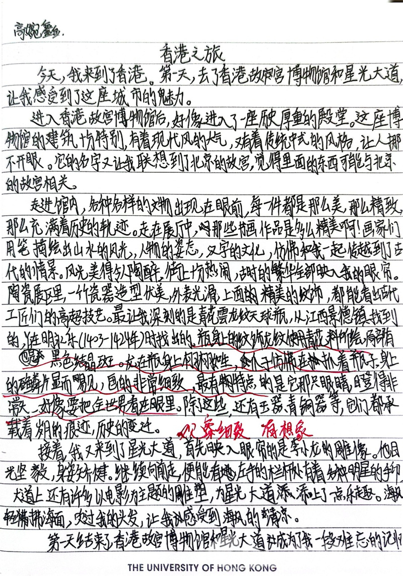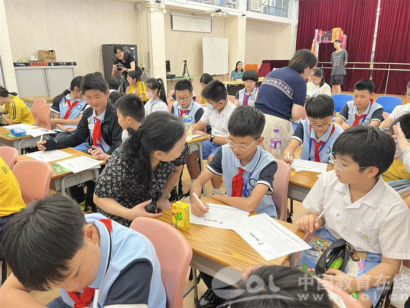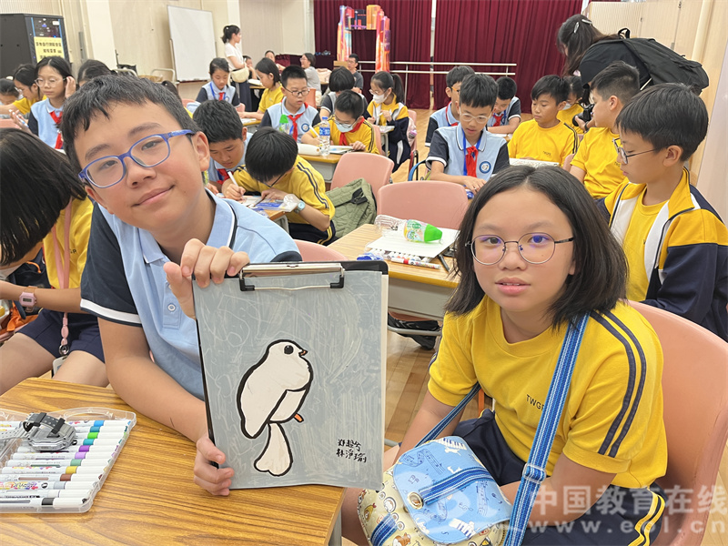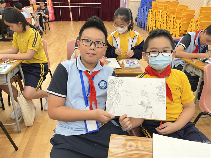 随后,大家回到荃湾官立小学,与香港的小伙伴们共同进行绘画创作。尽管语言沟通存在一些障碍,但艺术带来的感悟却是相通的。大家一起将眼中的艺术作品和心中的独特感悟描绘在画纸上。