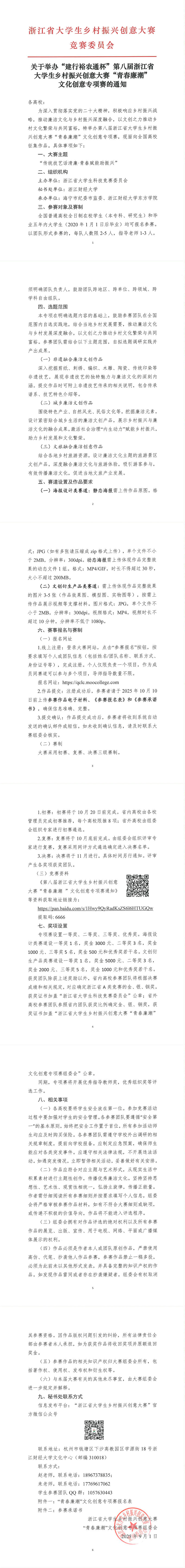 中国教育在线浙江站讯 (记者 陈显婷 通讯员 赵苑 包宏杰)各位大学生“创客”,你想一展风采吗?舞台搭好啦!近日,“建行裕农通杯”第八届浙江省大学生乡村振兴创意大赛“青春廉潮”文化创意专项赛正式启动。赛事围绕“传统技艺话清廉·青春赋能助振兴”的主题,面向全国普通高校全日制在校生及毕业五年内的大学生征集作品。