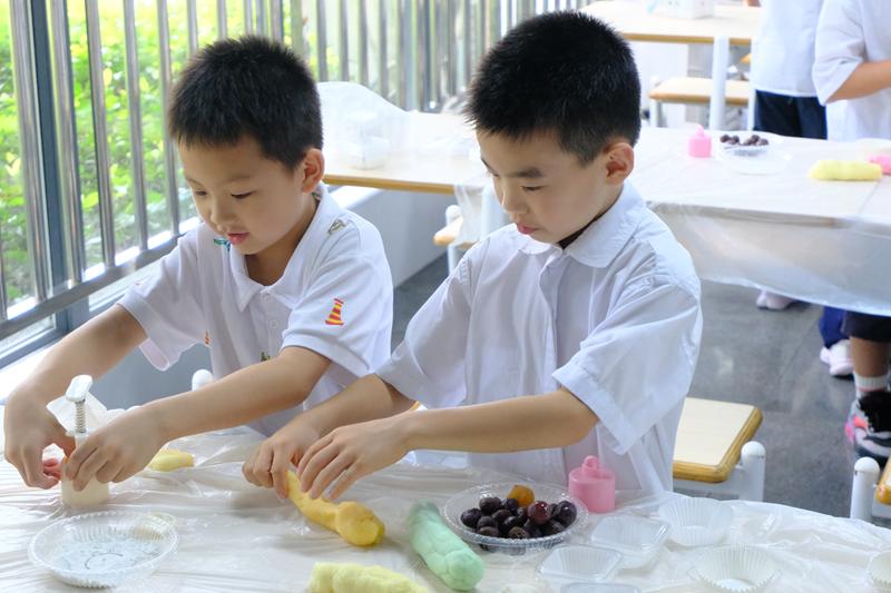 “我的月饼好像变成饺子了!”一位102班的小朋友看着自己手中露馅的“作品”,发出了惊呼。他的202班“小导师”忍住笑,化身急救医生,成功实施了“面皮移植手术”。