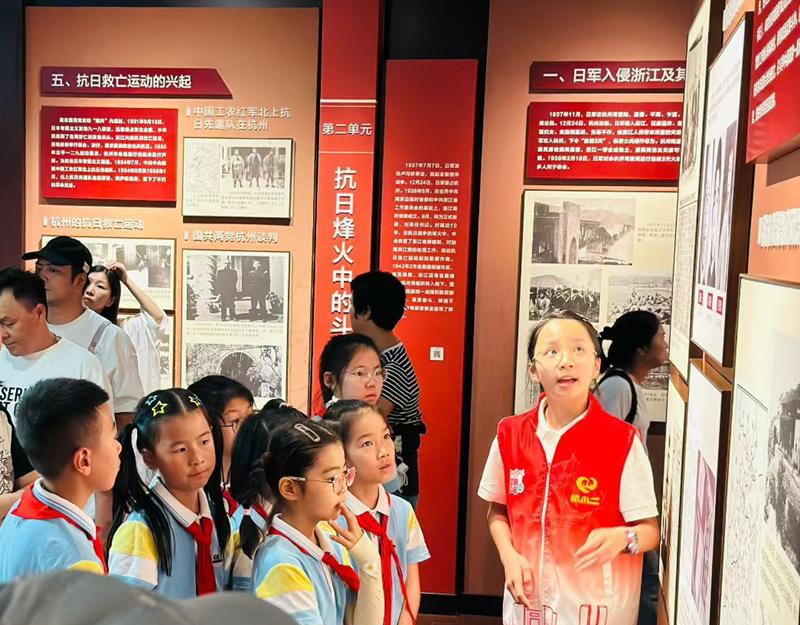 这份荣誉的背后,是澎汇小学“红领巾讲解员”培养体系的系统支撑。学校秉持“让每一个孩子健康成长、梦想飞扬”的办学理念,构建了科学完备的培养机制:在课程层面,将语言表达、礼仪规范和杭州本土文化知识融入日常教学,通过“唇枪舌战少年说”等跨学科特色活动锻炼学生的综合能力;在培养路径上,建立“校级-年级-班级”三级梯队,针对不同学段学生特点开展针对性训练;在实践平台上,与杭州海塘遗址博物馆、杭州地铁、李宁公元等单位共建实践基地,为学生提供真实的讲解场景;在激励机制方面,通过“红领巾奖章”和“星级讲解员”评定,激发学生的参与热情和荣誉感。