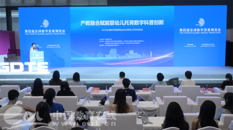 中国教育在线浙江站讯 (记者 陈显婷)9月27日,由杭州师范大学主办的“产教融合赋能婴幼儿托育数字科普创新”专场在2025全球数字贸易博览会3号展厅成功举办,吸引了来自托育产业、学术研究及数字影像创作领域的专家与师生共计120余人参与。