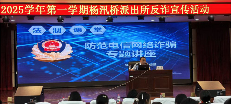 活动伊始,杨汛桥派出所副所长成强警官以《防范电信网络诈骗》为主题,结合2025年辖区典型案例展开讲解。通过播放诈骗分子话术录音、展示仿冒支付界面等多媒体手段,成警官生动还原了杀猪盘游戏装备诈骗等典型套路。特别强调的“三不”原则——不泄露验证码、不点击陌生链接、不贪小便宜,引起师生强烈共鸣。“我原来觉得诈骗离我们很远,今天才知道游戏账号交易都可能被骗。”七(15)班邵洪宸感慨地说。