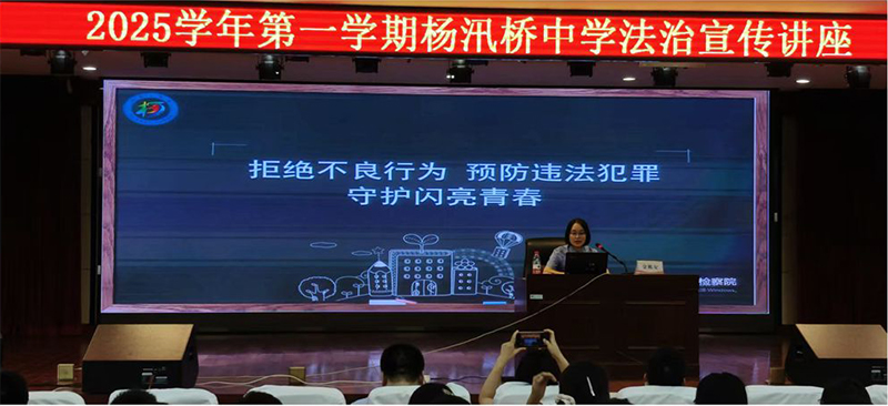 中国教育在线浙江站讯(编辑 邱彬鑫 通讯员 鲍文贤)正值中国农民丰收节之际,绍兴市柯桥区杨汛桥中学江桥校区于9月23日下午开展了一场的法制安全教育宣讲活动。七年级全体师生在警官与检察官的带领下,共同经历了一场法治精神洗礼,现场掌声雷动,互动频频。