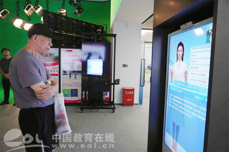“你好,明天是什么天气?”面对虚拟主播,浙江老年大学的学员主动提问,虚拟主播流畅自然地回答、生动形象的表情,让大家感受到AI技术的“智慧温度”。学院学生自主设计的“AIGC 校园相机”成了“爆款”体验项目——只需站在相机前拍摄2秒,AI就能快速生成带有校园特色场景的创意图像,老年学员们拿着生成的照片,开心地互相展示:“没想到现在AI还能帮我们‘定制’校园风景照,太有意思了!”
