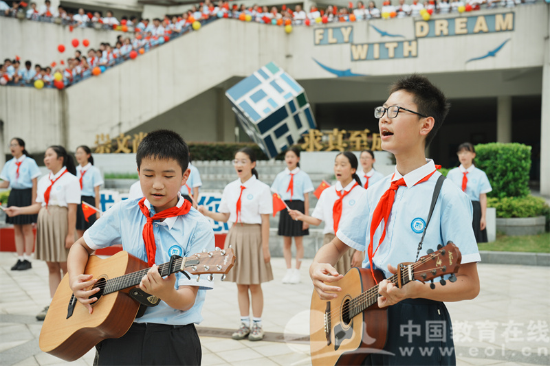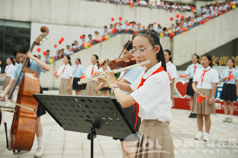 中国教育在线浙江站讯(通讯员 俞上)“五星红旗迎风飘扬,胜利歌声多么响亮……”9月27日中午,杭州市笕成中学尚德广场上歌声嘹亮,红旗如潮。为庆祝中华人民共和国成立76周年,全校师生齐聚广场,举行“红巷精神励初心,六融共唱颂中华”主题合唱活动,用嘹亮的歌声和炽热的情感,向伟大祖国献上最真挚的祝福。