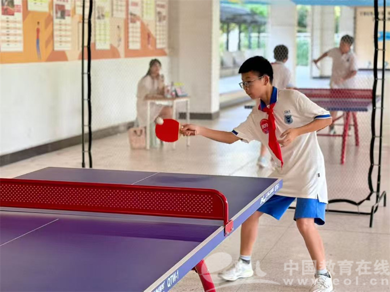 一楼架空层的乒乓球对决,更是点燃了全场热情。直板与横板交替,削球、扣杀、旋球轮番上演,白色小球在球台上来回跳跃。落后时不气馁,领先时不骄傲,选手们的每一次挥拍,都诠释着体育竞技的精神;观众们的每一声喝彩,都传递着青春的热血。小小的球台,装下了少年的不服输,更装下了品格的锤炼。