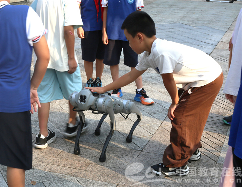 “你看!好酷呀”刚走进校园大门,小朋友们立刻被眼前的景象按下了“暂停键”,圆溜溜的大眼睛里闪烁着好奇的光芒。只见面带微笑的校长身边,站着两位“科技明星”——机器人和机器狗,它们不仅能流畅行走、转身,还化身成礼貌的绅士,不时向来到校园的同学们招手、点头。