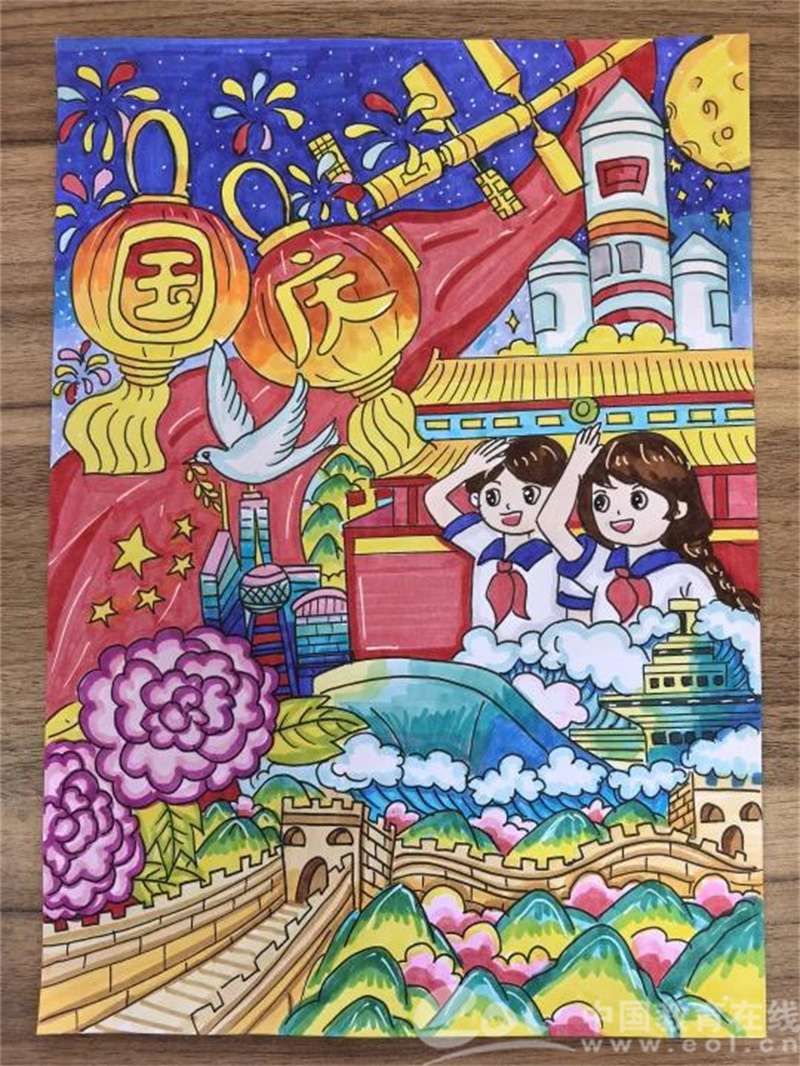 队员们手握五彩画笔,在画纸上尽情勾勒。有的描绘天安门城楼的庄严,有的涂绘五星红旗迎风飘扬的模样,有的展现万里长城的雄伟壮阔。色彩交织间,祖国的壮丽山河与繁荣景象跃然纸上,满是少年儿童对祖国的热爱与赞美。