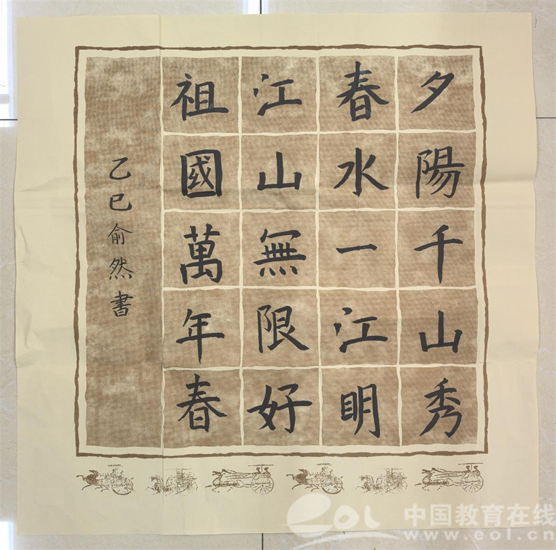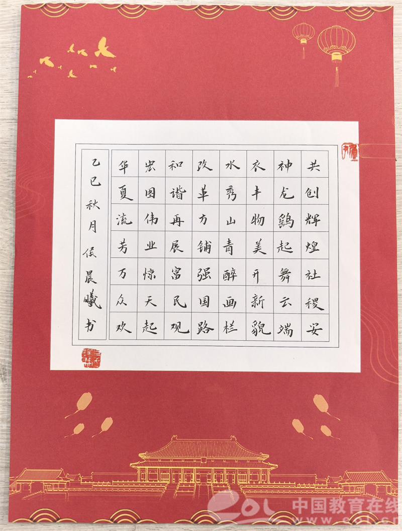 队员们还研墨铺纸,以笔为媒挥毫创作。“夕阳千山秀,春水一江明”“共创辉煌社稷安,神龙鹞起舞云端”“红军不怕远征难,万水千山只等闲”等字样在宣纸上徐徐展开,笔锋或刚劲有力,或灵动飘逸。一笔一划间,既展现着中华传统文化的魅力,更传递出对祖国繁荣昌盛的深情礼赞。
