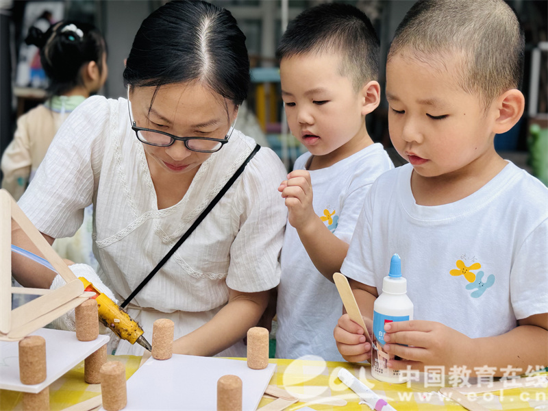 民族游戏大狂欢更是将活动推向高潮。藏族押加游戏中,小朋友们背对背,小手攥住彩色绸带,使劲往后拽,现场喝彩声不断;傣族舞蹈教学里,孩子们模仿孔雀动作,跳出灵动神韵;黎族竹竿舞旁,小朋友跟着节奏灵活穿梭,完成挑战还能带走民族风小礼物;维吾尔族“高空走索”达瓦孜,孩子们顶着沙包在平衡木上保持平衡,感受千年技艺的乐趣;壮族歌圩对歌比赛,歌声传递着情感与文化;苗族扎染冰箱贴、白族版画挂件制作,让孩子们感受传统工艺的魅力;还有壮族铜鼓手工,孩子们发挥创意,锻炼动手能力。