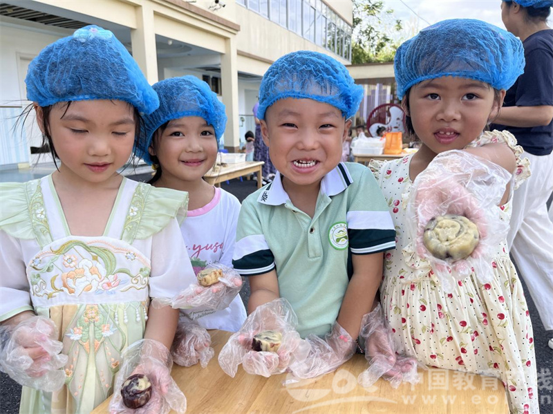 中国教育在线浙江站讯 国庆与中秋双节喜相逢,这是传承中华优秀传统文化,也是培育幼儿爱国情怀的绝佳契机。9月28日,常山县兴贤幼儿园同弓分园的校园里香气四溢,欢笑连连,原来是孩子们在认真地进行着月饼DIY。孩子们心得:月饼还得是自己做的才香。