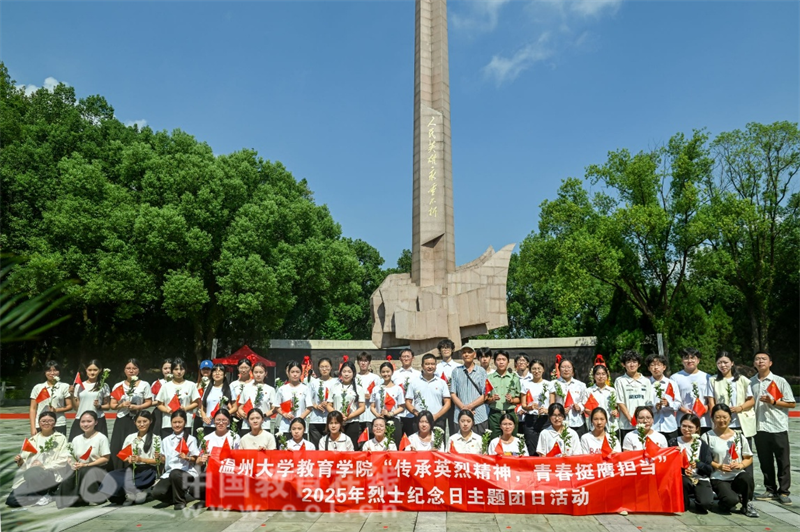 中国教育在线浙江站讯 (记者 陈显婷 通讯员 王伊如 胡铸鑫 潘英)今年9月30日是第12个烈士纪念日,温州大学教育学院师生代表来到温州市翠微山烈士陵园,以“传承英烈精神,青春挺膺担当”为主题开展团日活动,在实景体验、亲身实践、志愿服务中共上一堂沉浸式“行走的思政课”。