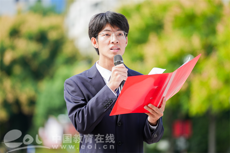 领读人李佳炳带领师生回顾抗战峥嵘岁月,致敬英雄先烈,并立足“百年未有之大变局”的时代背景,阐述新时代温大青年的责任与使命,发出“铭记历史、赓续血脉、勇担重任”的青春强音。