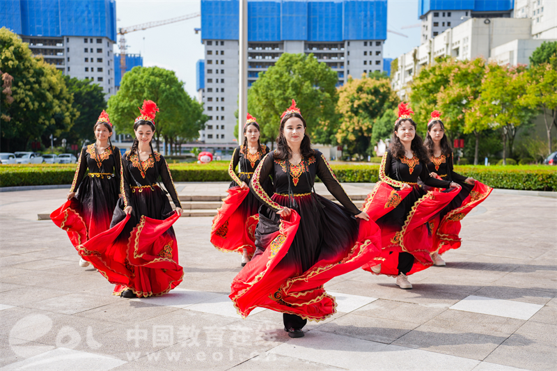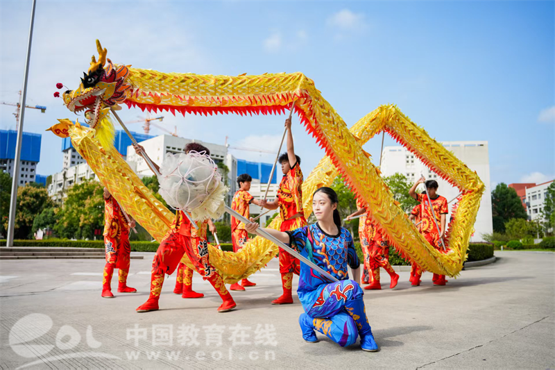 仪式特别设置了系列文化展演环节,以多元化形式丰富了爱国主义教育内涵。退役大学生擒敌拳动作刚劲、气势如虹,展现了军人本色与炽热忠心;诗朗诵《民族的丰碑》深情讴歌英雄精神,以语言艺术传递信仰力量;非遗展演《龙腾九霄》,舞姿矫健、腾跃起伏,演绎了不屈的民族精神与中华优秀传统文化的青春活力;维吾尔族同学表演的新疆舞蹈串烧,热情奔放、绚丽多彩,以艺术为桥梁,谱写了民族团结进步的美好篇章;全场大合唱《歌唱祖国》,歌声激越、情感真挚,将现场气氛推向高潮,寄托了全体师生对祖国繁荣昌盛、国泰民安的诚挚祝福。