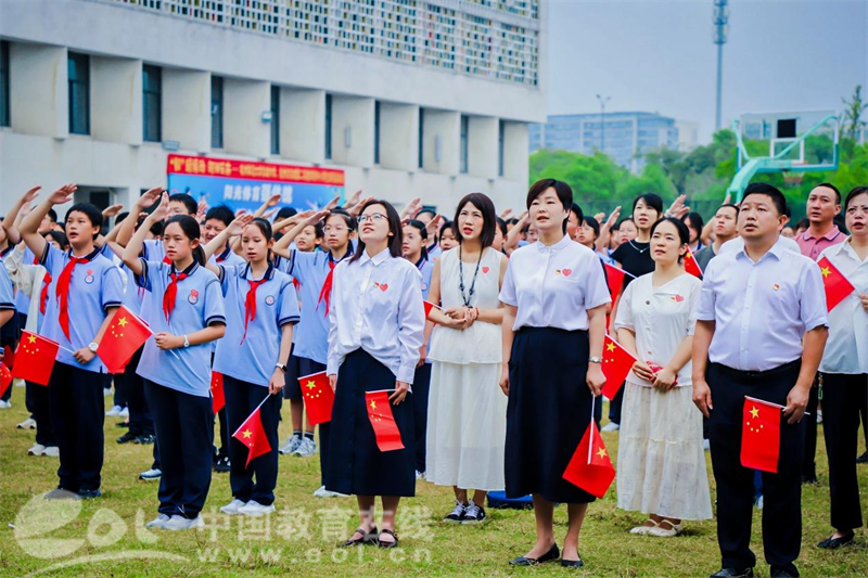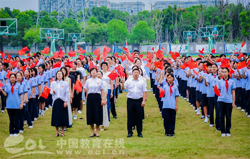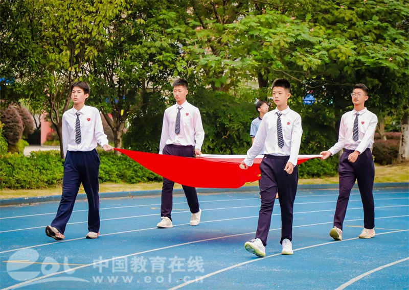 中国教育在线浙江站讯 (记者 陈显婷 通讯员 郑立克)金秋送爽,丹桂飘香。10月1日上午,在中华人民共和国成立76周年暨中国人民抗日战争暨世界反法西斯战争胜利80周年的重要时刻,为厚植师生家国情怀、强化爱国主义教育,杭师大东城中学与东城第二实验学校举行了“牢记党的教导 争做强国少年”国庆节升旗仪式,师生齐聚一堂,共庆祖国华诞,共抒爱国情怀。