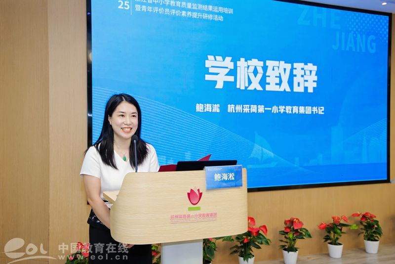 杭州采荷第一小学教育集团书记鲍海淞作为学校承办方致欢迎词,生动展示了以“采一芯”智慧平台为载体的评价改革实践。通过AI赋能作业评价、跨学科项目化测评、“荷娃秀”素养展示等多元方式,学校实现了“让评价可寻证、让成长被看见”,为全省提供了校本化实践的鲜活样本。