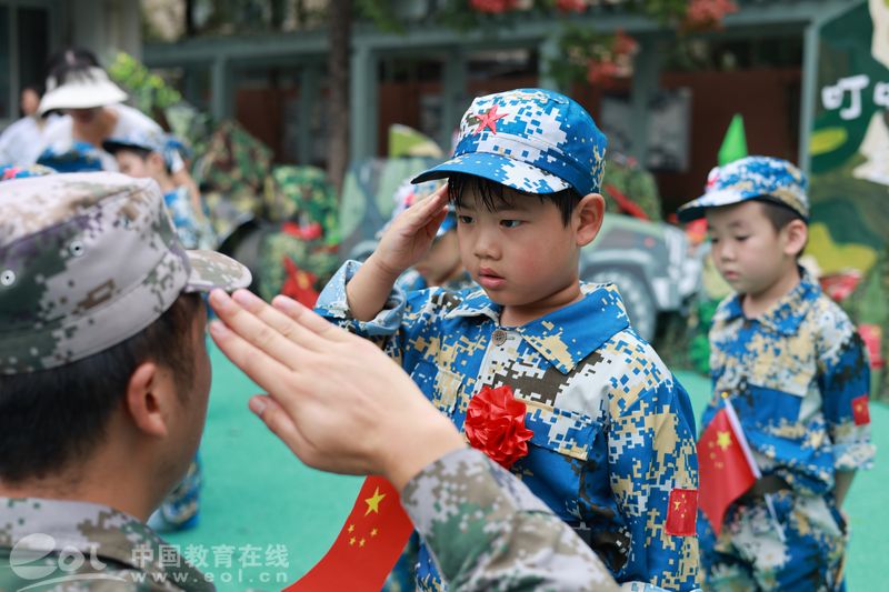 “团结就是力量,这力量是铁,这力量是钢……”午休过后,幼儿园里回荡着孩子们嘹亮的歌声。在教官的带领下,孩子们用稚嫩的嗓音唱响经典军歌,爱国情怀在歌声中进一步升华。