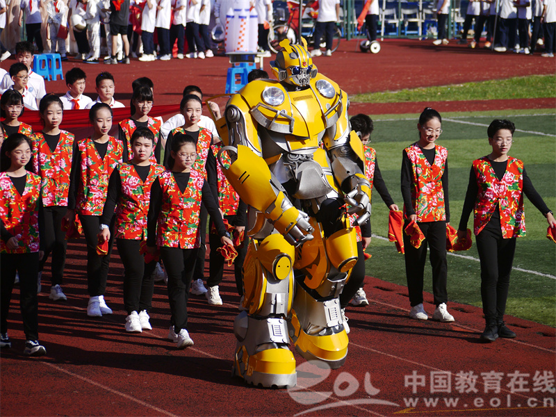 各班级方阵则紧扣“科技赋能运动,共筑强国梦想”这一主题,为现场观众呈现出一幅幅令人惊叹的创意画卷。其中,智能机器人方阵踏着未来节拍翩然起舞,航天模型方阵托起璀璨星河,机械装置方阵则奏响创新强音。学子们以巧思匠心将科技元素与体育精神深度融合,淋漓尽致地展现了清河人“胸怀科技梦想,恪守体育初心”的开创精神。
