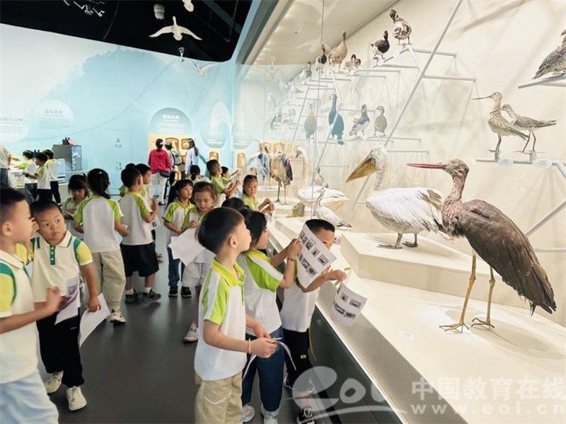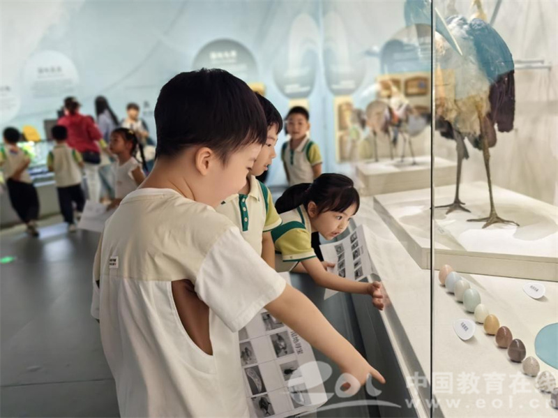 迎着秋日晨光,中大班的“橙小宝”们背上轻便行囊,有序集合后乘坐大巴前往西溪湿地博物馆。一路上欢歌笑语,顺利抵达目的地。走进博物馆,中班的“湿地探秘”游戏即刻开启。孩子们跟着老师穿梭于各个展厅,每当找到研学单上的动植物图案时,便兴奋地向同伴展示。参观结束后,孩子们用自己的方式完成研学单,并互相交流展示,分享感受,在互动中加深了对湿地生物的认知。