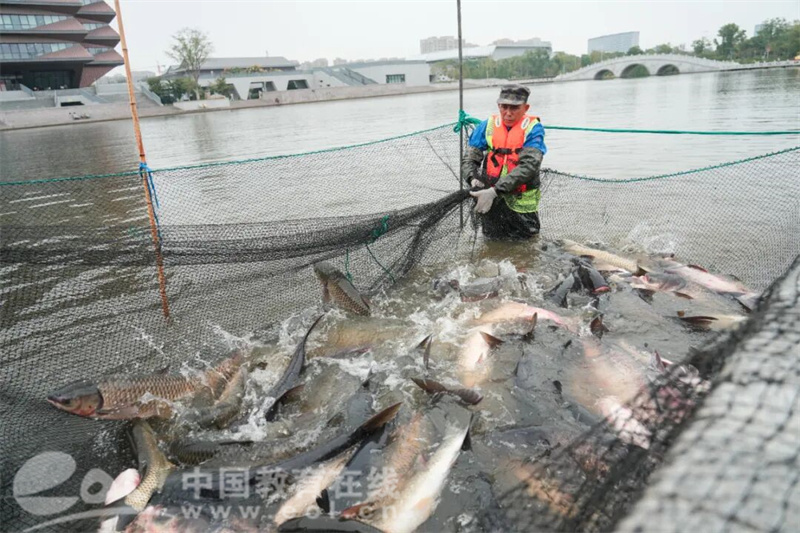 这些鱼苗都是两年前后勤部门精心投放的,如今正好迎来丰收,“两年前就投了鱼苗,就等校庆共享丰收!”后勤服务有限公司耿栋博介绍,养鱼既丰富了校园生态,更让师生校友感受校园温暖。
